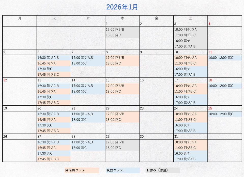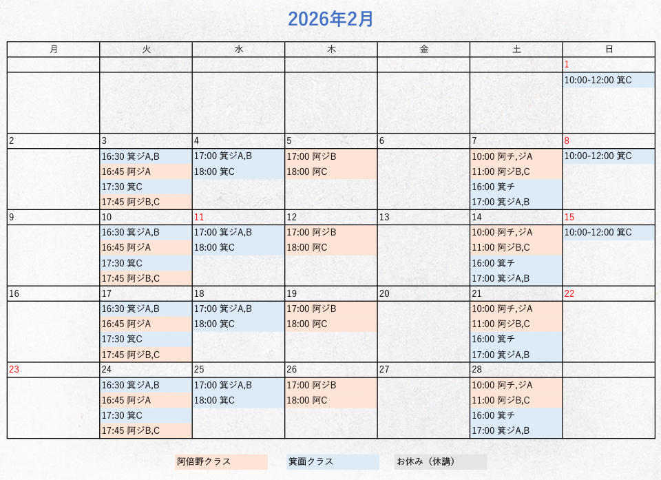 レッスンスケジュール